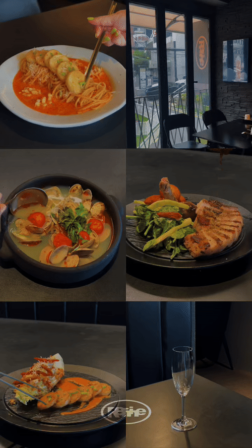 우대갈비 49,900 | 돈마호크 스테이크 44,000 | 감자전 19,900 | 해물파전 19,900 | 육회 27,000 | 관자 알배추구이 17,900 | 피순대구이 17,900 | 우삼겹 청양파스타 17,900 | 한우곱창전골 39,000 | 문어연포탕 34,900 | 해물 토마토 누룽지탕 18,900 | 들깨 비빔파스타 17,900 | 크림수제비 17,900 | 깻잎오일 크림파스타 19,900 | 관자 로제파스타 21,900 | 해물 토마토파스타 18,900 | 양송이구이 10,900 | 항정강정 13,900 | 베이컨 수란 김치볶음밥 12,900 | 김퓨레명란밥 12,900 | 땅콩버터 오징어 15,900 | 통 로메인샐러드 13,900 | 아란치니 9,900 | 누룽지 아이스크림 6,900 | 호떡 8,000