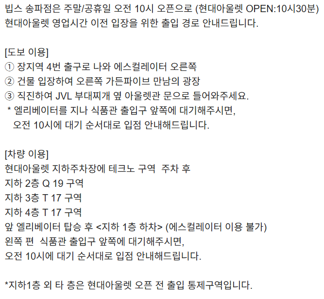 📍 주소: 서울특별시 송파구 문정동 634 엔씨백화점 패션관 7층
