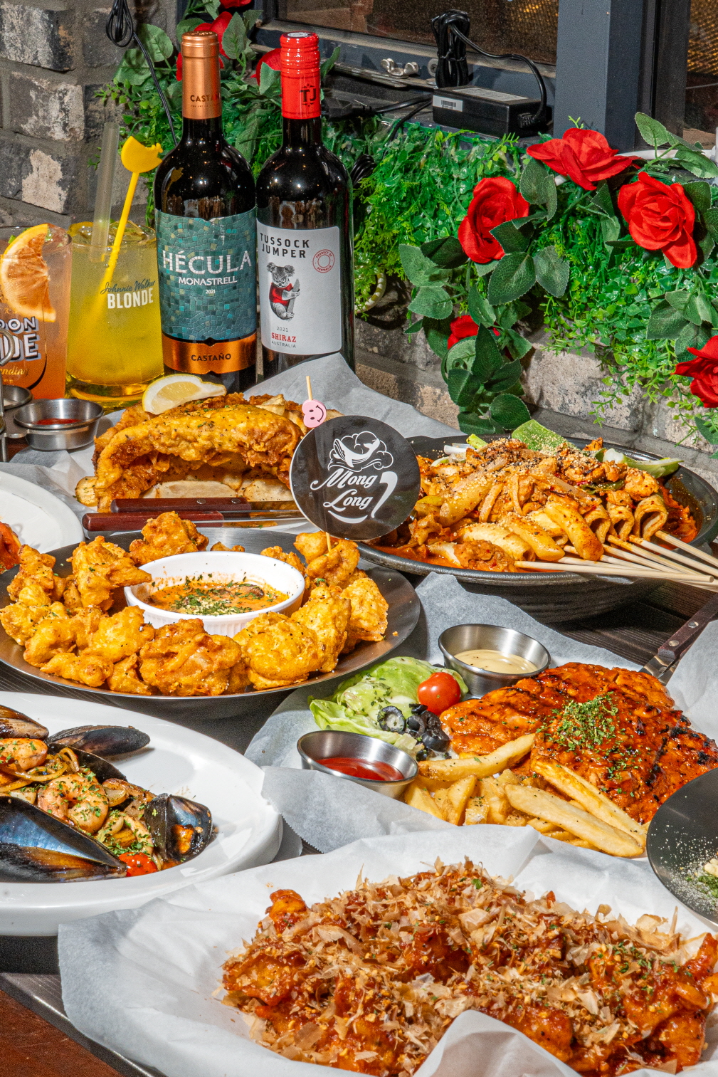 몽롱s 매콤로제 치킨 23,000 | 새우 감바스 알 아히오 28,000 | 나가사키 순두부 짬뽕 29,000 | 생선 스테이크 (피쉬&칩스) 27,000 | 몽롱s 닭다리살 스테이크 23,000 | 미국식 깐풍치킨 (제네럴토스치킨) 23,000 | 수원 왕갈비 치킨 23,000 | 클래식 양념 치킨 23,000 | 달콤버터 치킨 23,000 | 치즈 불닭 29,000 | 몽롱s 달콤 로제 파스타 19,000 | 몽롱s 매콤 함박 로제 파스타 21,000 | 미트 토마토 볼로네제 파스타 20,000 | 페퍼로니 오일 파스타 19,000 | 새우+명란 오일 파스타 20,000 | 해산물 오일 파스타 21,000 | 몽롱s 달콤 로제 떡볶이 19,000 | 조금 많이 매콤한 해물 떡볶이 20,000 | 얼큰 어묵도리탕 39,000 | 크리스피 오징어 튀김 18,000 | 칠리 치즈 나쵸 18,000 | 칠리 치즈 프라이 18,000 | 그릴 촉촉 오징어 19,000 | 몽롱s 오레오 프라이 17,000 | 매콤로제프라이 18,000 | 오뎅탕 20,000 | 윙봉 & 프렌치프라이 23,000 | 럭셔리 트러플 프렌치 프라이 9,000 | 빠사삭 먹태 19,000 | 생맥주(테라) 685ml 6,900 | 생맥주(테라) 800ml 7,900 | 코젤다크(시나몬 원하는만큼!) 7,900 | Im pine 죠니하이볼 8,900 | 자몽이볼 8,900 | 모히볼 8,900 | 봉봉이볼 8,900 | Slow 몽롱한 IPA 8,900 | 블랑 1664 8,900 | 퇴근길(생맥주) 7,900 | 칙칙폭포(생맥주) 7,900 | 몽롱s 클래식 하이볼 8,900 | 진토닉 7,900 | 병맥주 6,000 | 소주 6,000