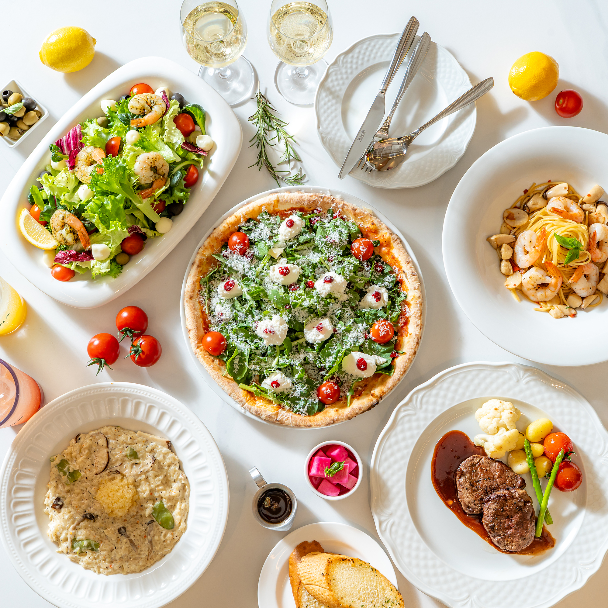우니(성게) 생면 파스타 26,600 | 단호박 크림 뇨끼 23,300 | 살치살 스테이크 with 캐비어 56,500 | 토마토 루꼴라 피자 29,800 | 관자&홍새우 링귀니 26,200 | 깻잎페스토&연어 생면 파스타 25,500 | 안키모(아귀간) 생면 딸리아딸레 22,300 | 돌미나리 한우 라구 파스타 25,500 | 루꼴라 페스토&하몽 파게리 25,200 | 레몬&쉬림프 크림 링귀니 22,700 | 삼치 스테이크 크림 딸리아딸레 23,500 | 포르치니 트러플 생면 딸리아딸레 26,600 | 아부르가 캐비어&트러플 파게리 27,000 | 살치살 로제 생면 파스타 27,500 | 연어스테이크 로제 파게리 25,900 | 스카르파리엘로 링귀니 19,500 | 부라타치즈 뽀모도로 23,500 | 한우 볼로네제 생면 파스타 26,500 | 바질 크림 뇨끼 21,000 | 연어&양송이 크림 뇨끼 24,500 | 깻잎페스토 홍새우 리조또 23,300 | 관자살 로제 리조또 26,500 | 바질&고등어 리조또 24,100 | 트러플 크림 치마살 리조또 26,800 | 미소크림 오리가슴살(200g)스테이크 38,800 | 찹스테이크와 구운야채 37,500 | 바질 포르마지오 피자 28,500 | 하몽&리코타 샐러드 18,300 | 라따뚜이+치아바타 14,500 | 리코타 샐러드 14,500 | 부라타치즈 샐러드 16,300