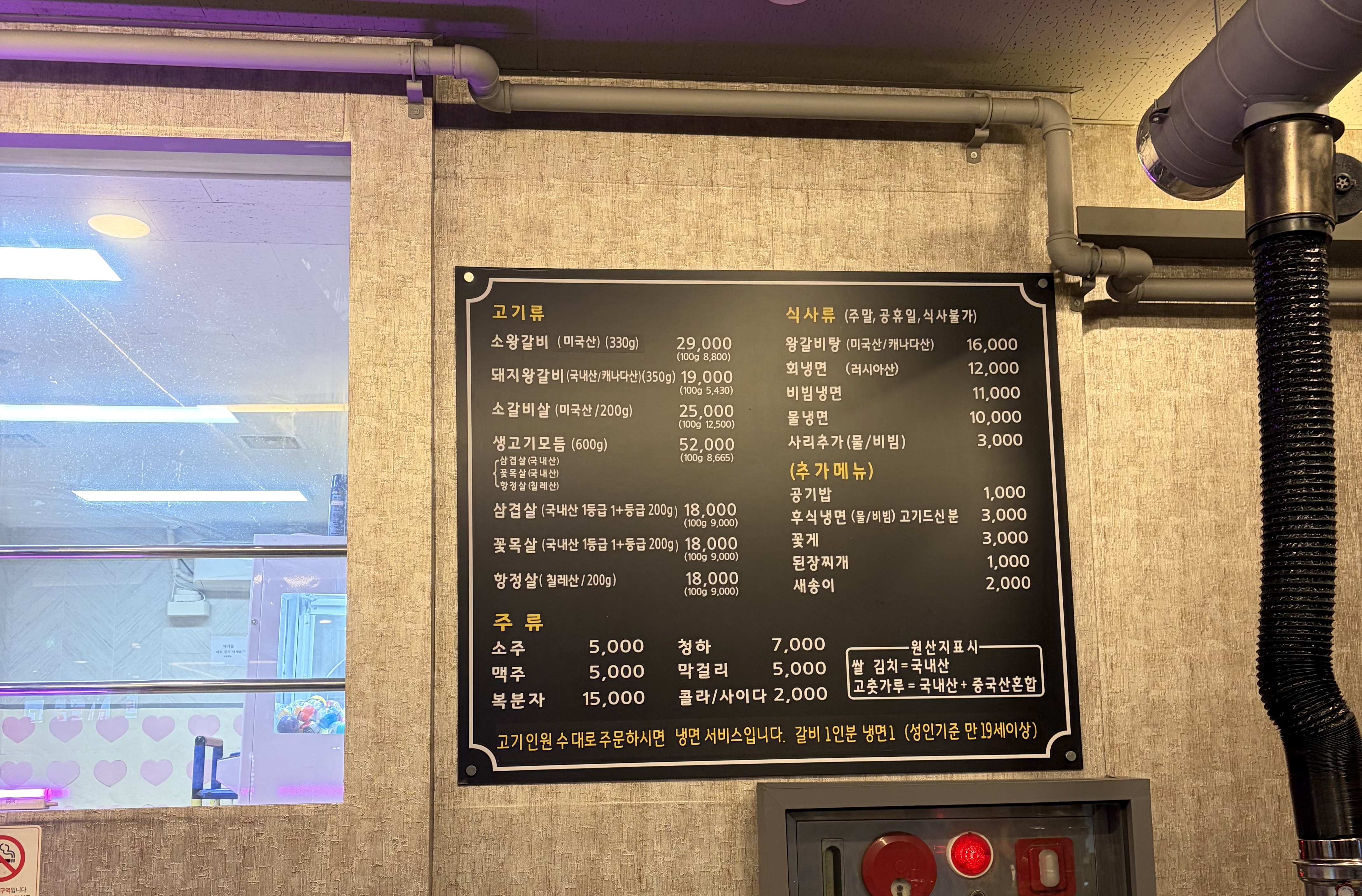 돼지갈비 16,000 | 공기밥+된장찌개 1,000 | 된장찌개 추가 1,000 | 소주 4,000 | 맥주 5,000 | 콜라.사이다 2,000 | 청하 6,000
