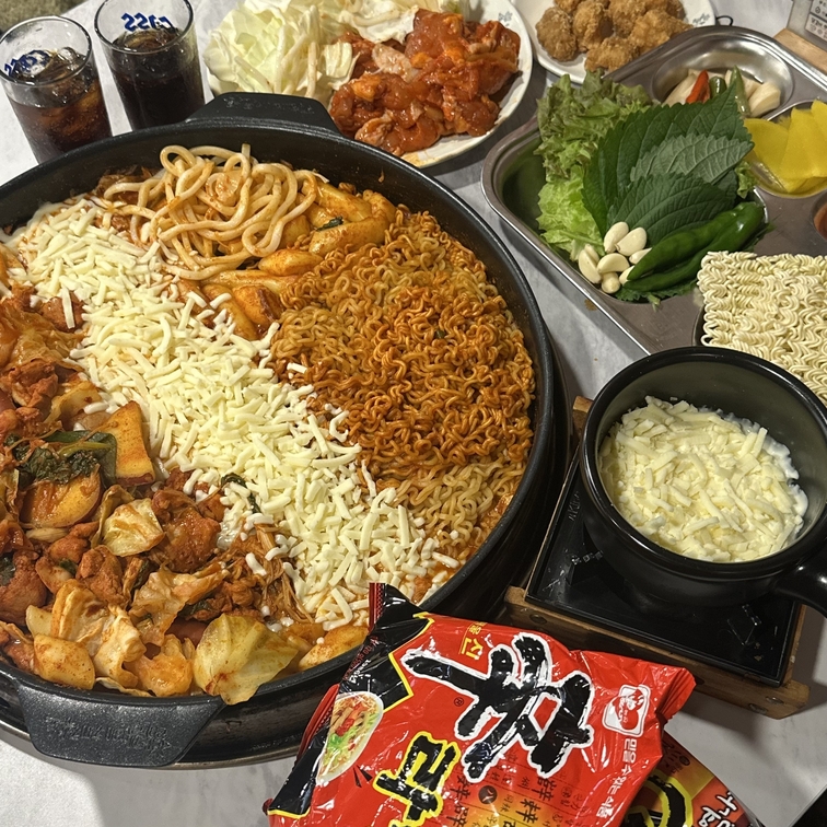 연어알쌈 17,000 | 쇠고기들깨탕 라면사리포함 18,000 | 치즈닭갈비 (떡+고구마+치즈 포함) 20,000 | 오코노미야끼 16,000 | 치즈 크림 감자 베이컨 그라탕 17,000 | 치즈 치킨토마토 그라탕 17,000 | 돈까스김치나베 18,000 | 3색 크림치즈 계란말이 16,000 | 크림 해물라면 투움바 8,000 | 살얼음 과일+아이스크림 8,000 | 씹을 먹꺼리>로제 치즈 닭갈비 22,000 | 궁물 먹꺼리>탄탄멘 18,000 | 궁물 먹꺼리>해물 누룽지탕 17,000 | 궁물 먹꺼리>스펨 부대찌게 18,000 | 궁물 먹꺼리>쇠고기 야채전골 18,000 | 궁물 먹꺼리>어묵 전골 17,000 | 씹을 먹꺼리>통마늘 닭모래집&누른밥 16,000 | 씹을 먹꺼리>매콤 무뼈 닭발&누른밥 16,000 | 보조 먹꺼리>돈까스만+생선까스만 13,000 | 보조 먹꺼리>돈까스만 8,000 | 보조 먹꺼리>허니 감자칩 9,000 | 씹을 먹꺼리>모듬 소세지 17,000 | 씹을 먹꺼리>모듬포 18,000 | 보조 먹꺼리>황태껍질튀김 7,000 | 씹을 먹꺼리>오코노미야키 16,000 | 보조 먹꺼리> 진라면 5,000 | 보조 먹꺼리>짜빠구리 7,500 | 보조 먹꺼리> 짜파게티 5,000 | 보조먹꺼리>살얼음모둠과일&아이스크림 8,000 | 보조 먹꺼리>해물 크림라면 투움바 8,000 | 씹을 먹꺼리>연어알쌈 17,000 | 궁물 먹꺼리>돈까스 김치나베 18,000 | 씹을 먹꺼리> 치즈닭갈비 20,000 | 궁물 먹꺼리>쇠고기들깨탕 18,000 | 씹을 먹꺼리>3색 크림 치즈 계란말이 16,000 | 로제치즈닭갈비 22,000 | 씹을 먹꺼리>치즈 토마토 치킨 그라탕 17,000 | 씹을 먹꺼리>치즈크림감자베이컨그라탕 17,000