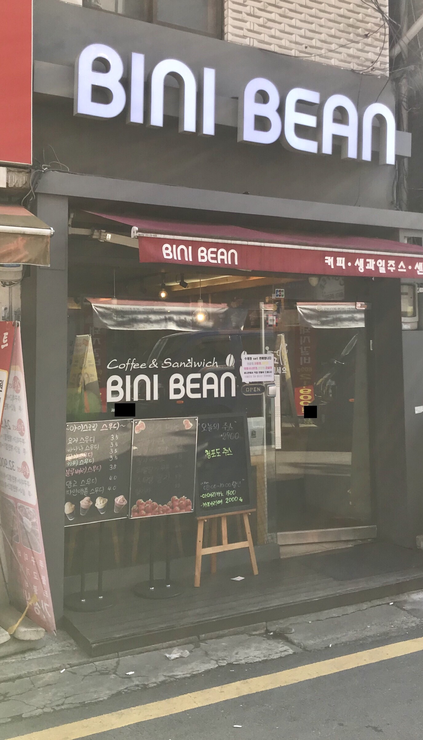 아메리카노 2,000 | 생과일주스 3,500 | 수제샌드위치 3,000~3,500 | 아포가토 4,500 | 컵과일 3,500~7,500