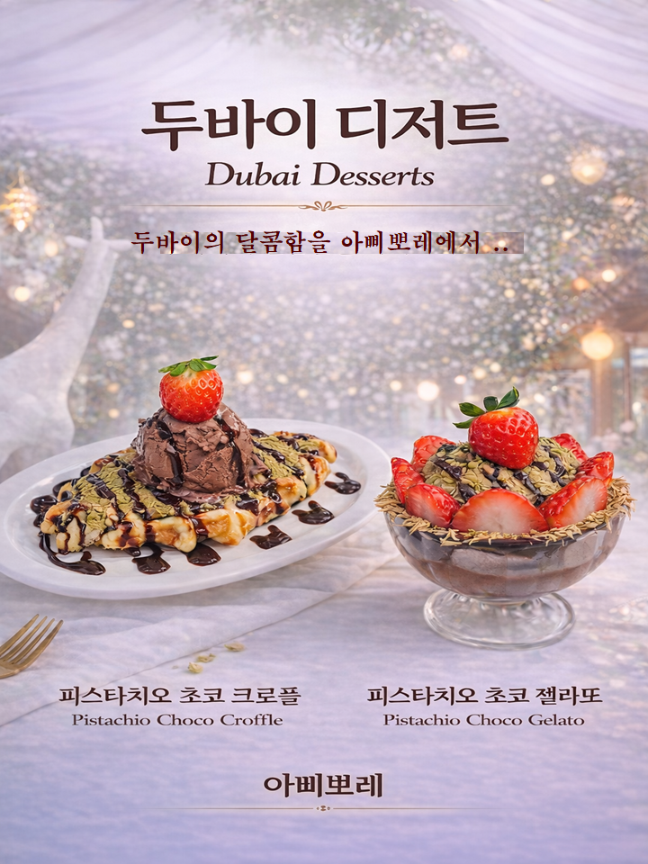 피스타치오 초코 젤라또(두파이젤라또) 22,000 | 피스타치오 초코 크로플(두바이크로플) 19,000 | 젤라또파르페 (딸기,쵸코,바닐라) 16,000 | 딸기 크로플 17,000 | 초코빙수 30,000 | 딸기빙수 29,000 | 생딸기 젤라또 15,000 | 초코 크로플 12,000 | 대추고차 10,000 | 딸기케이크 10,000 | 팥빙수 23,000 | 망고빙수 26,000 | 이태리안 젤라또 7,500 | 인삼식혜 9,000 | 사과수정과 9,000 | 말차샷슈패너 8,500 | 에스프레소 5,800~12,000 | 이탈리안 아포가토 12,000 | 치즈/티라미수 케이크 9,000 | 레몬차, 유자차 7,500 | 청포도라임모히또 13,000 | 청포도에이드 8,000 | 블루크림소다 9,000 | 딸기에이드 8,000 | 아인슈페너 8,000 | 딸기라떼 8,500 | 자몽맥주 10,000 | 허니레몬티 7,500 | 아메리카노 5,800 | 카페라떼 7,000 | 바닐라라떼 8,000