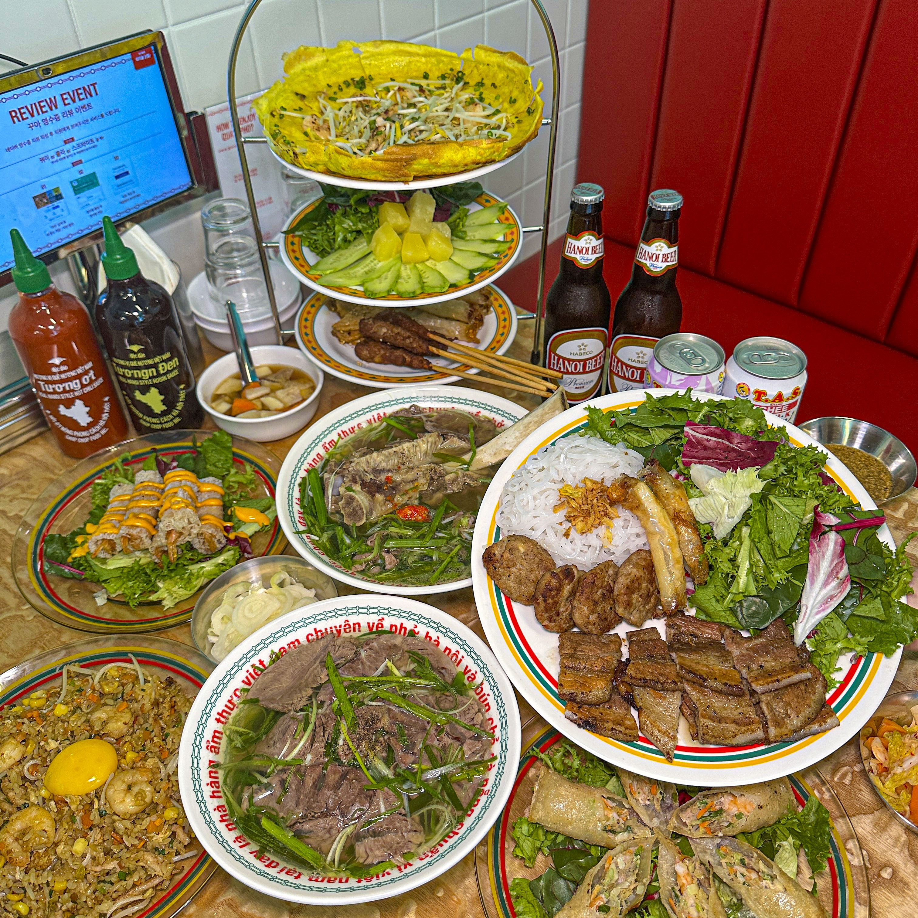 100% 소고기 월남쌈 무한리필 26,000 | 차돌양지쌀국수(M) Pho bo 10,000 | 차돌양지쌀국수(L) Pho bo 12,000 | 소고기쌀국수(M) Pho bo tai 10,500 | 소고기쌀국수(L) Pho bo tai 12,500 | 직화쌀국수(M) Pho tai lan 11,500 | 직화쌀국수(L) Pho tai lan 13,500 | 얼큰양지쌀국수M Pho bo cay 11,500 | 얼큰양지쌀국수L Pho bo cay 13,500 | 얼큰해물쌀국수M Pho hai san 12,500 | 얼큰해물쌀국수L Pho hai san 14,500 | 소고기볶음쌀국수(M) 10,500 | 소고기볶음쌀국수(L) 12,500 | 새우볶음쌀국수(M) 11,500 | 새우볶음쌀국수(L) 13,500 | 해산물볶음쌀국수(M) 12,500 | 해산물볶음쌀국수(L) 14,500 | 하노이 분짜 Bun cha 16,000 | 소고기볶음밥(M) 10,500 | 소고기볶음밥(L) 12,500 | 새우볶음밥(M) 11,500 | 새우볶음밥(L) 13,500 | 파인애플볶음밥(M) 11,500 | 파인애플볶음밥(L) 13,500 | 해산물볶음밥(M) 12,500 | 해산물볶음밥(L) 14,500 | 껌스엉 Com suon 14,000 | 꺼이꾸온 2P Goi cuon 8,500 | 하노이 수제 넴 4P Nem 9,000 | 하노이 더 큰 반미 Banh mi 9,500 | 더 큰 왕새우튀김 9,500 | 청정 공심채볶음 10,000 | 반세오 Banh xeo 18,500 | Set1.양지쌀국수M+넴 2P 15,000 | Set2.직화쌀국수M+꺼이꾸온 1P 15,500 | Set3.소고기볶음밥M+왕새우튀김2P 15,000 | Set4.파인애플볶밥M+왕새우튀김2P 16,000 | Set5.양지쌀M+소고기볶밥M+넴4P 29,000 | Set6.양지쌀+파인볶밥+꺼이꾸2P 29,500 | Set7.직화쌀+해물볶밥+왕새우튀4P 33,000 | Set8.직화쌀M+파인애플볶밥M+반미 32,000